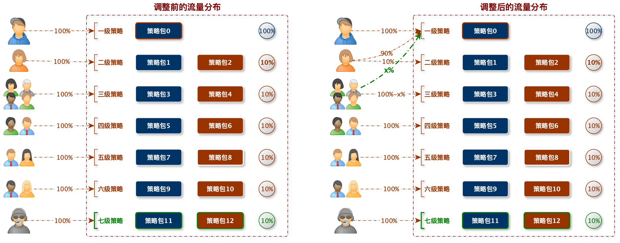 - 不同敏感度对应不同策略包组合: